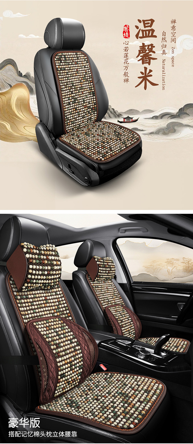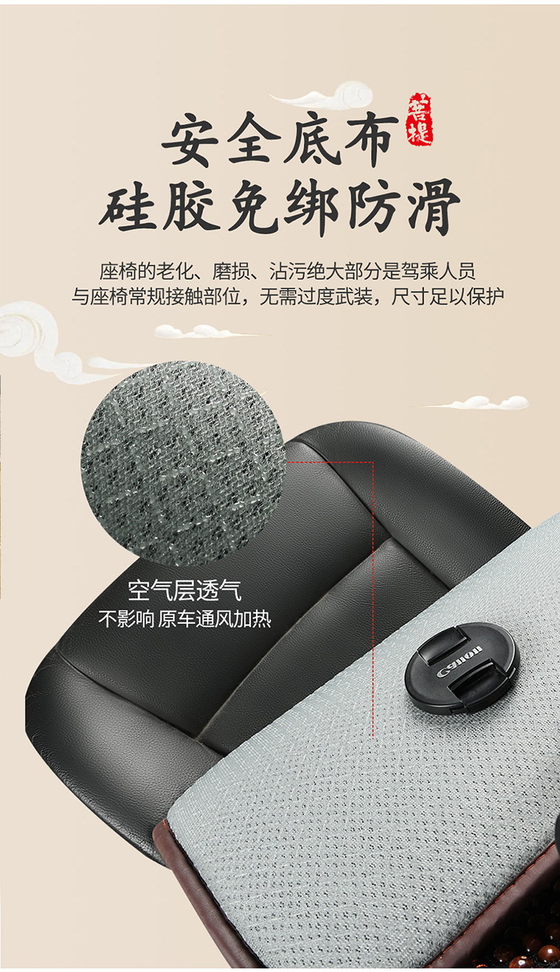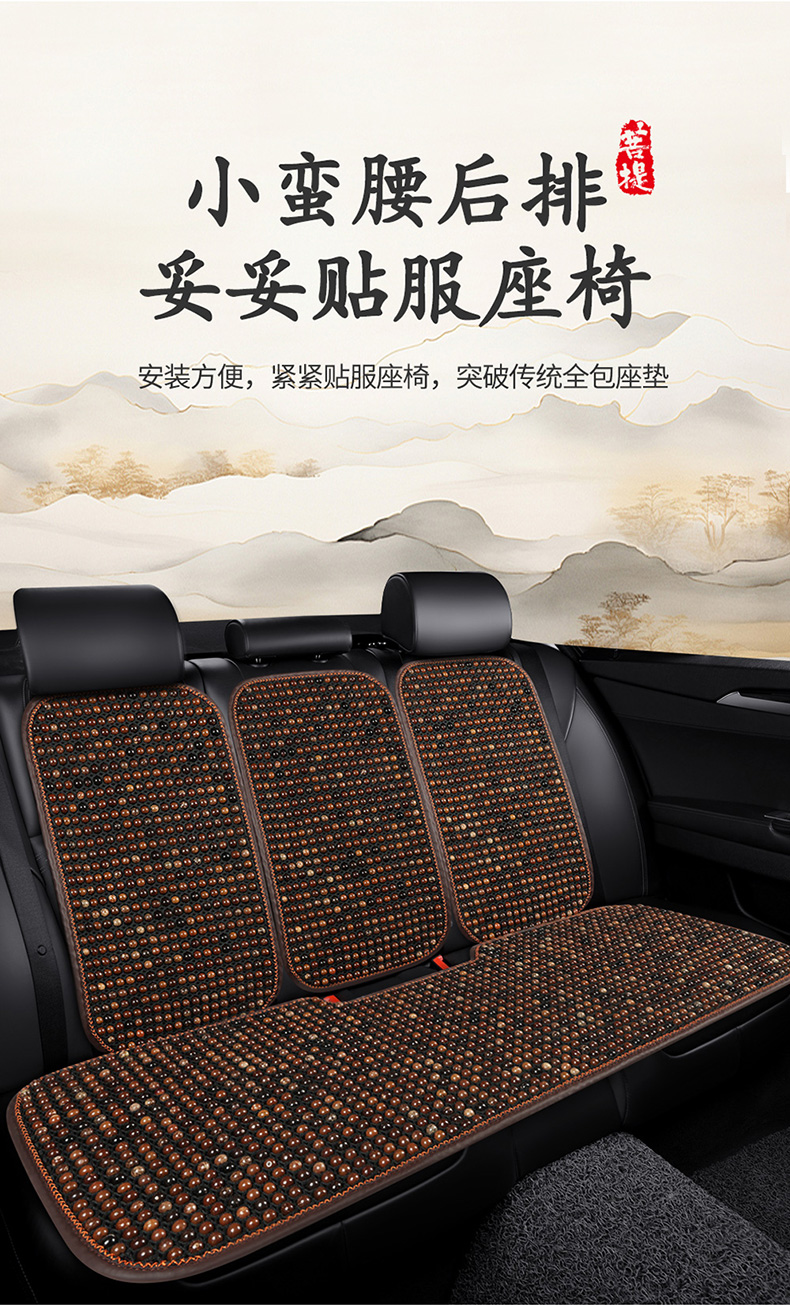 汽车坐垫夏季菩提子凉垫木珠凉席透气通风三件套单片小蛮腰车座垫