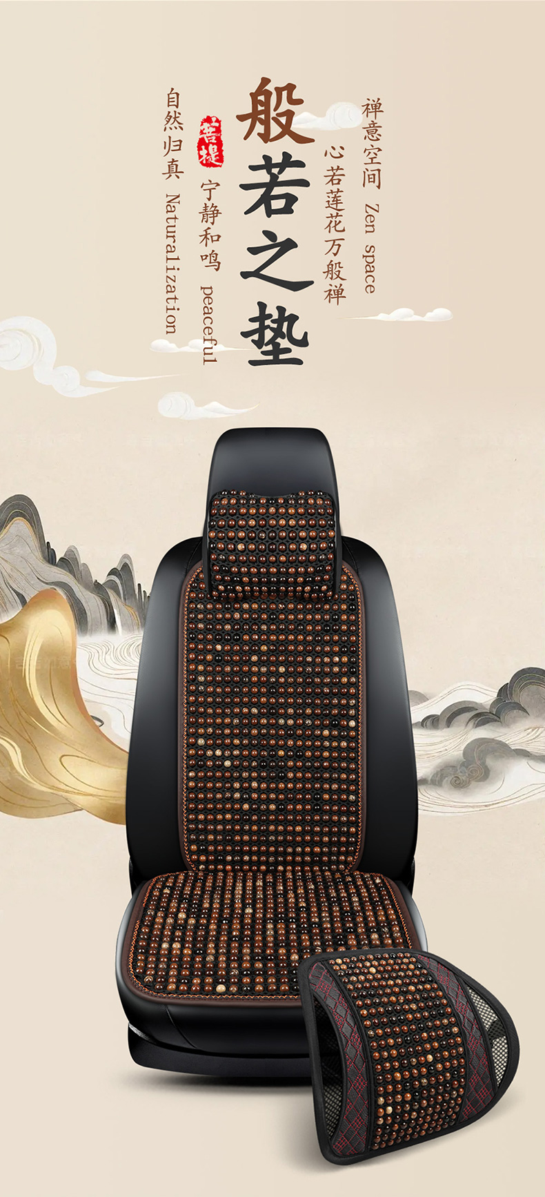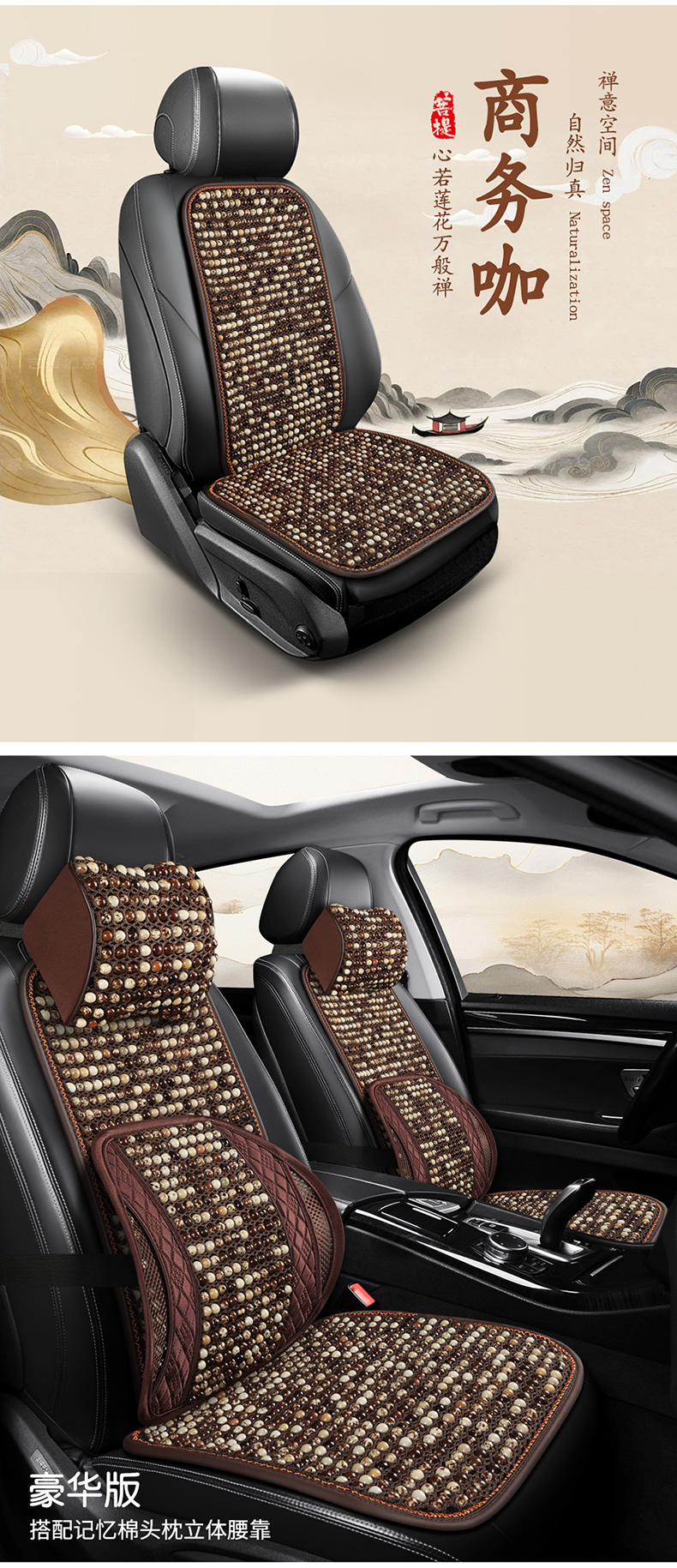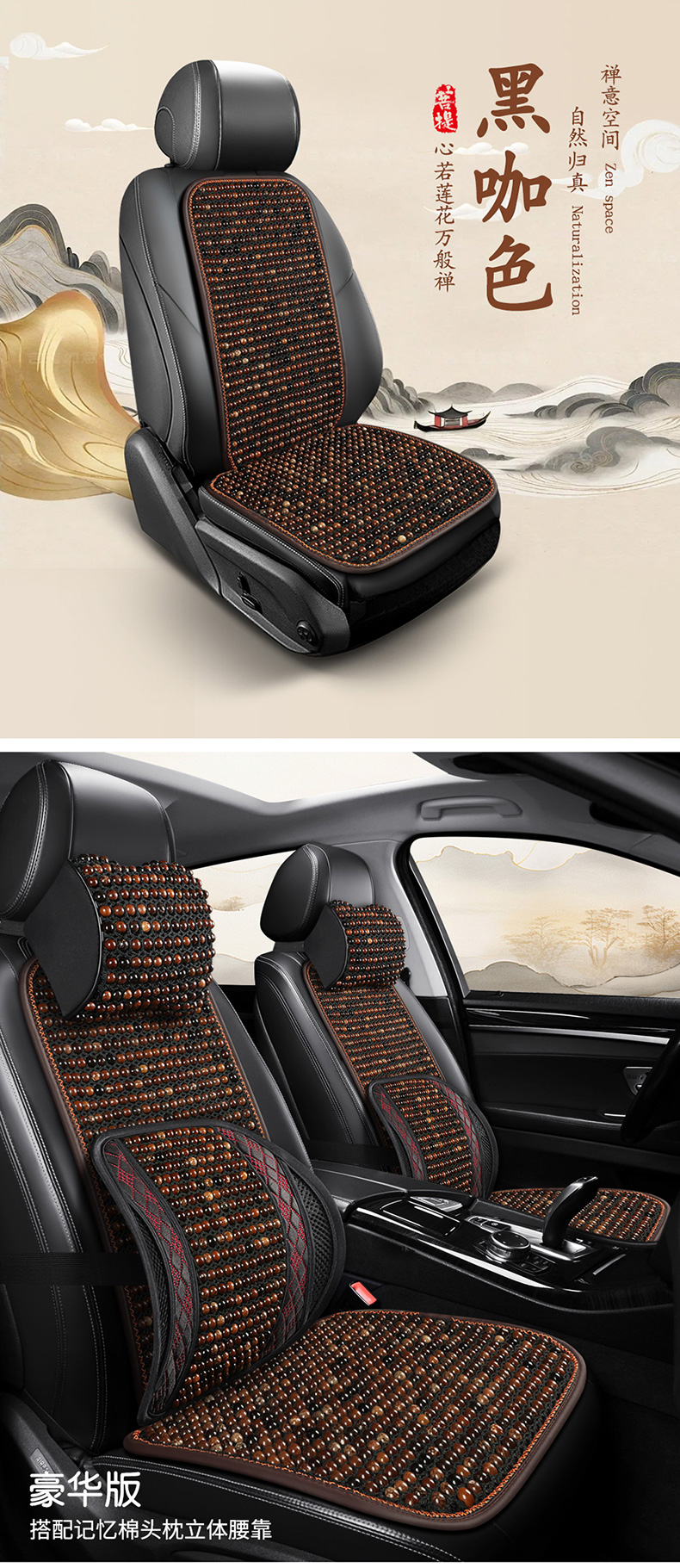 汽车坐垫夏季菩提子凉垫木珠凉席透气通风三件套单片小蛮腰车座垫