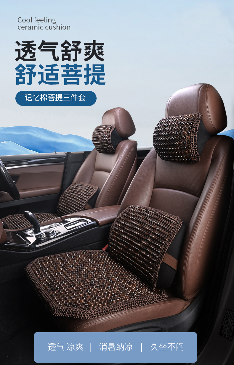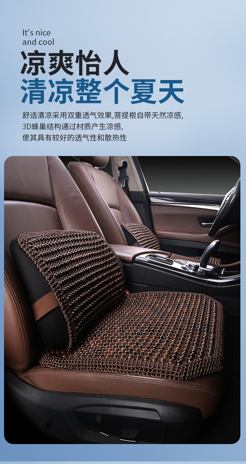 菩提子汽车坐垫夏季透气通风凉席垫方垫通用凉垫办公室椅垫靠背垫