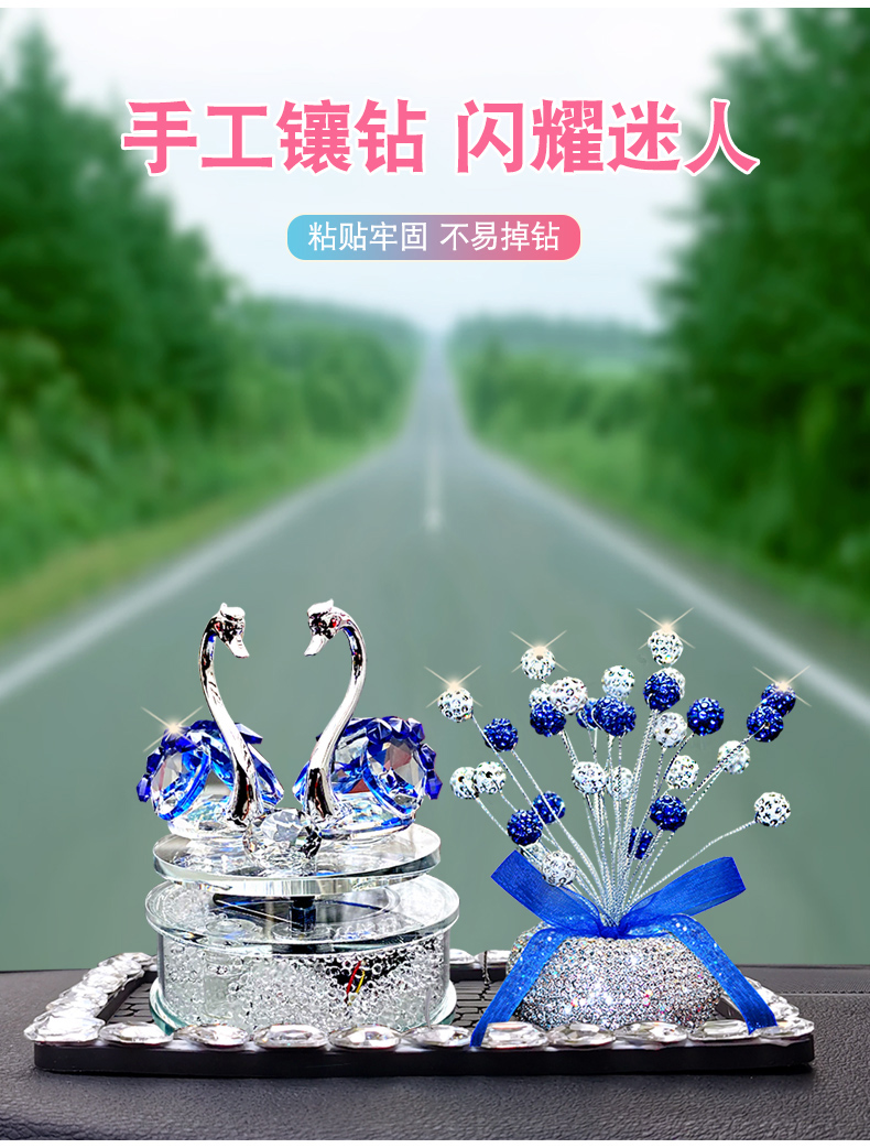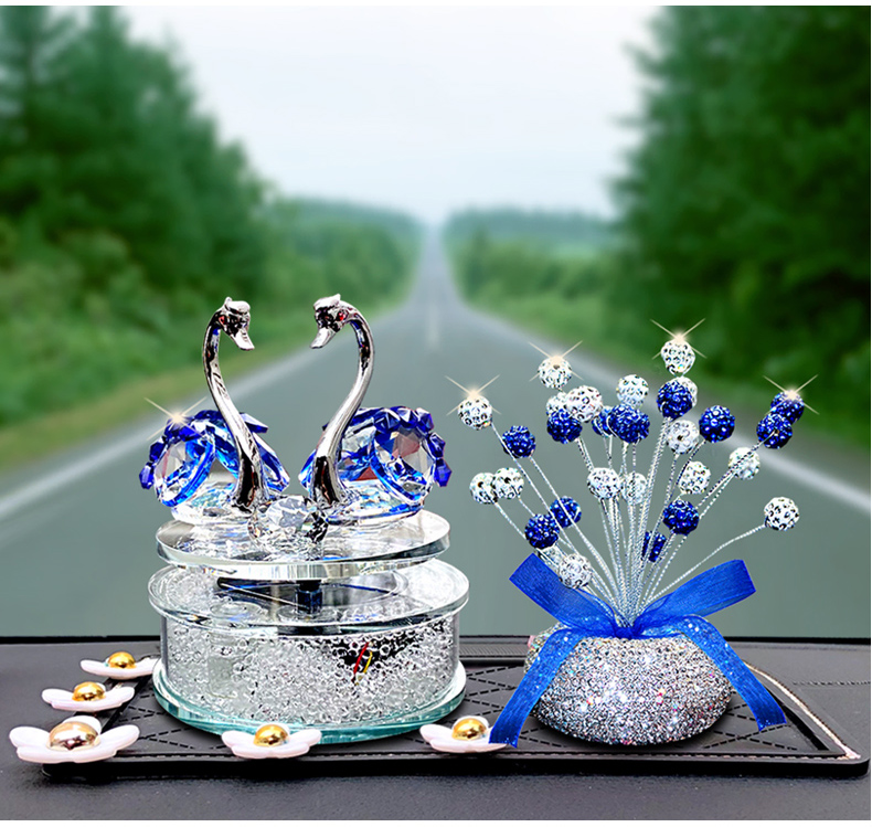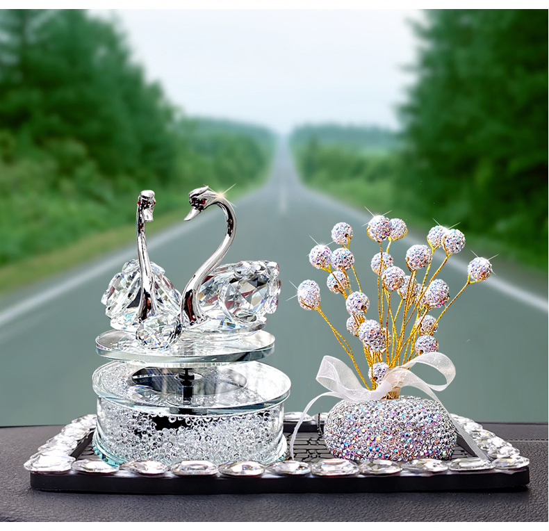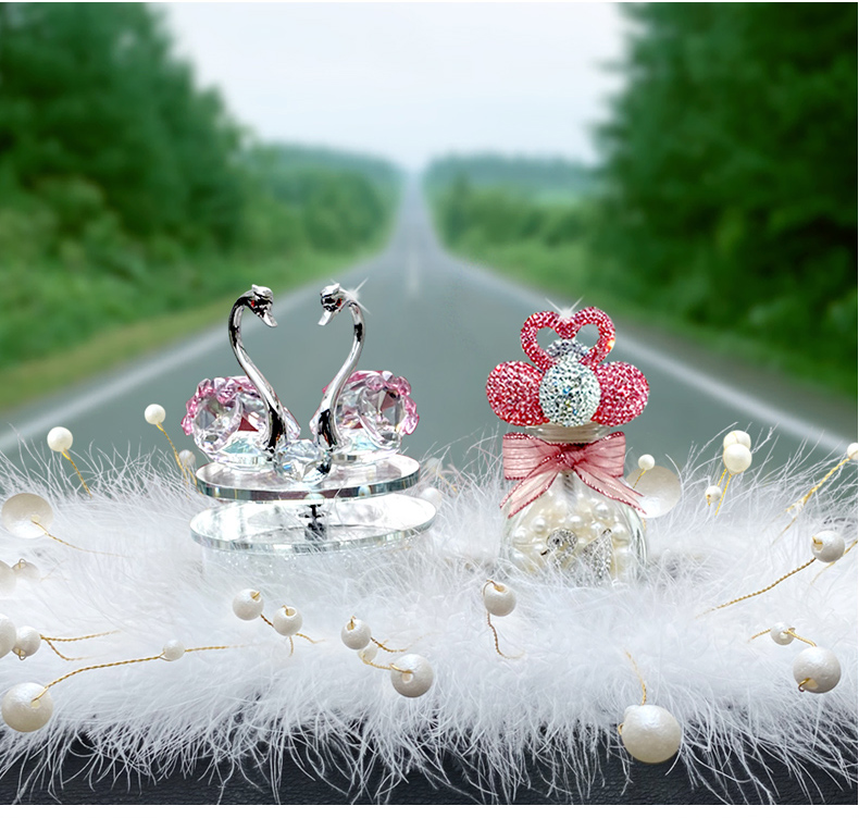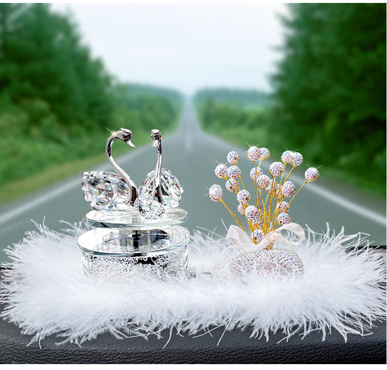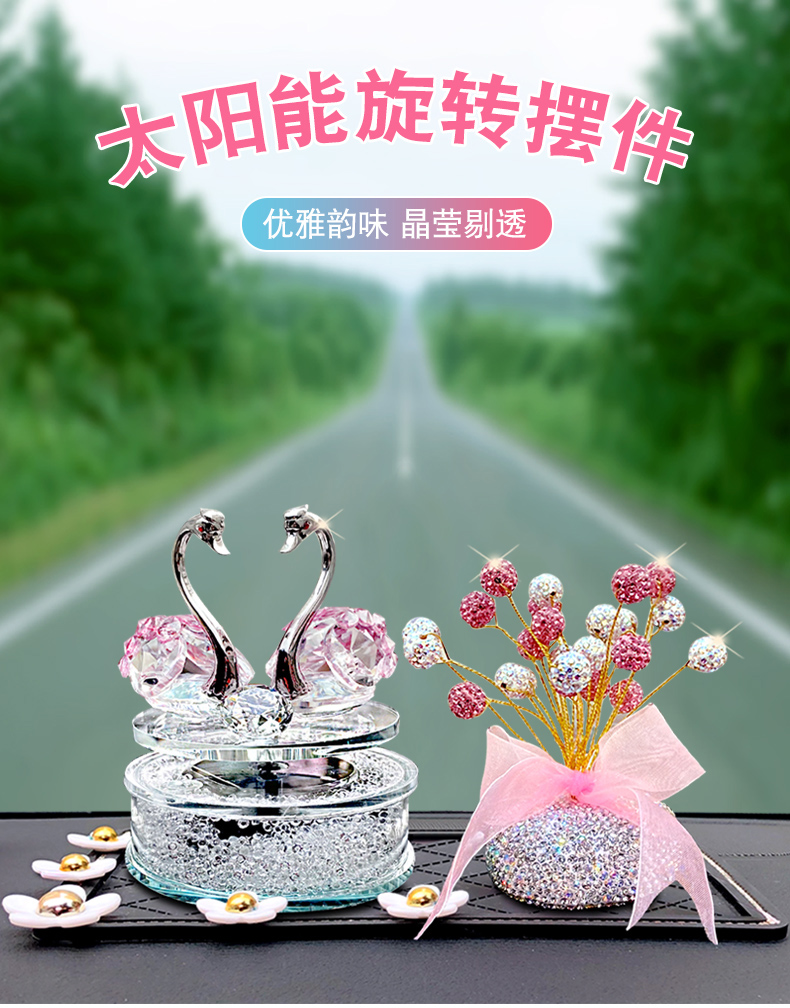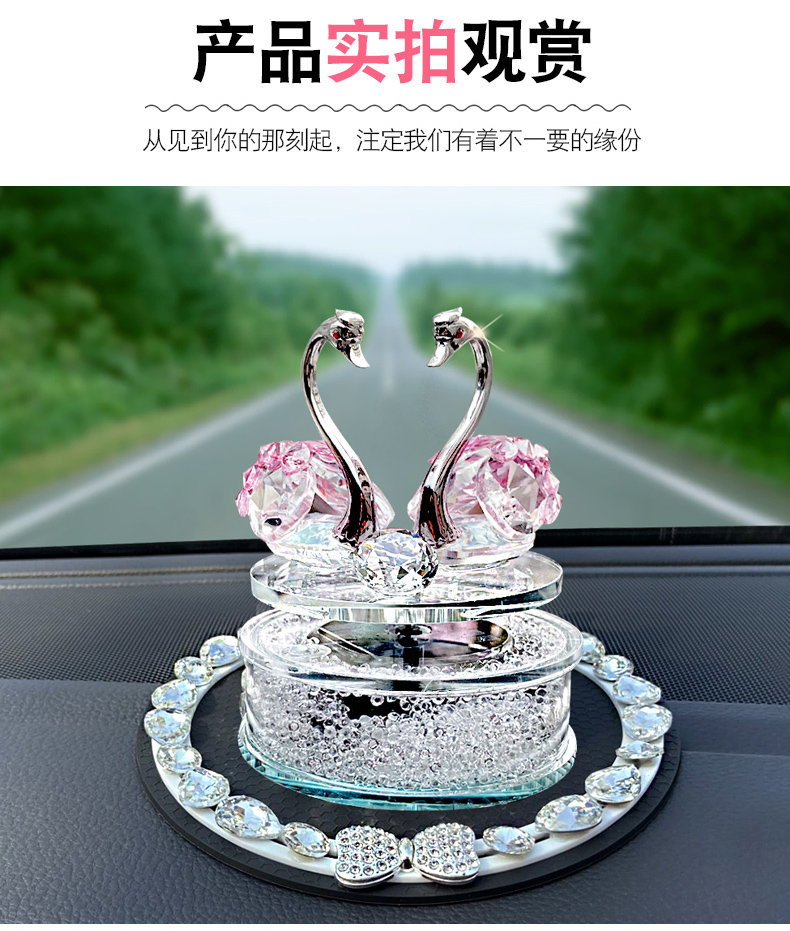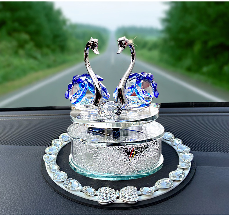 太阳能旋转水晶天鹅汽车香水摆件车载香薰可爱女神款车内装饰饰品