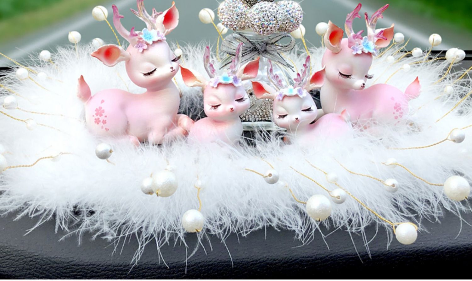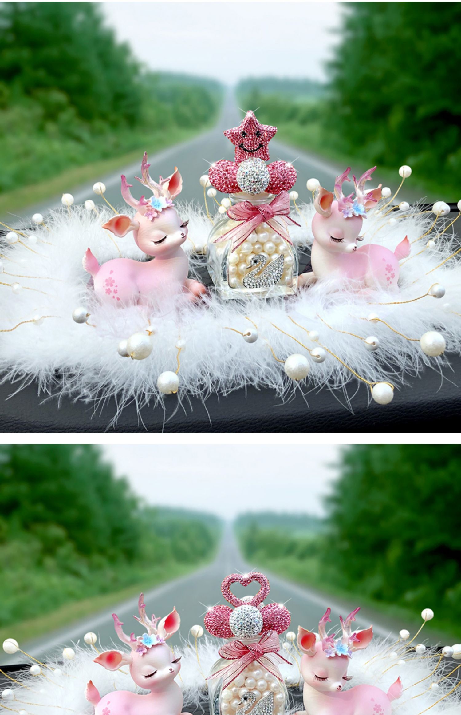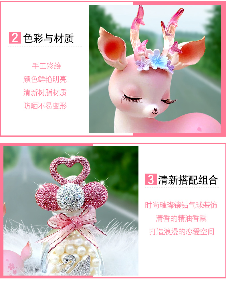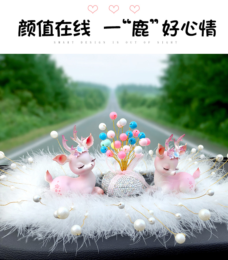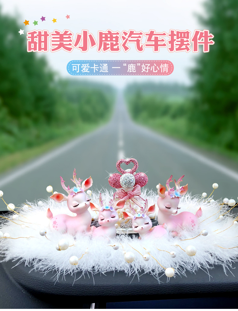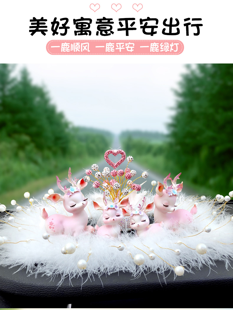 一路平安鹿汽车香水摆件女神款车载中控台香薰车内装饰用品大全