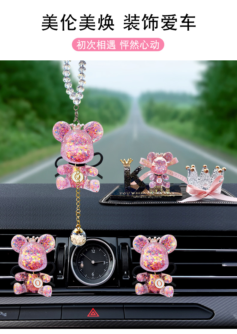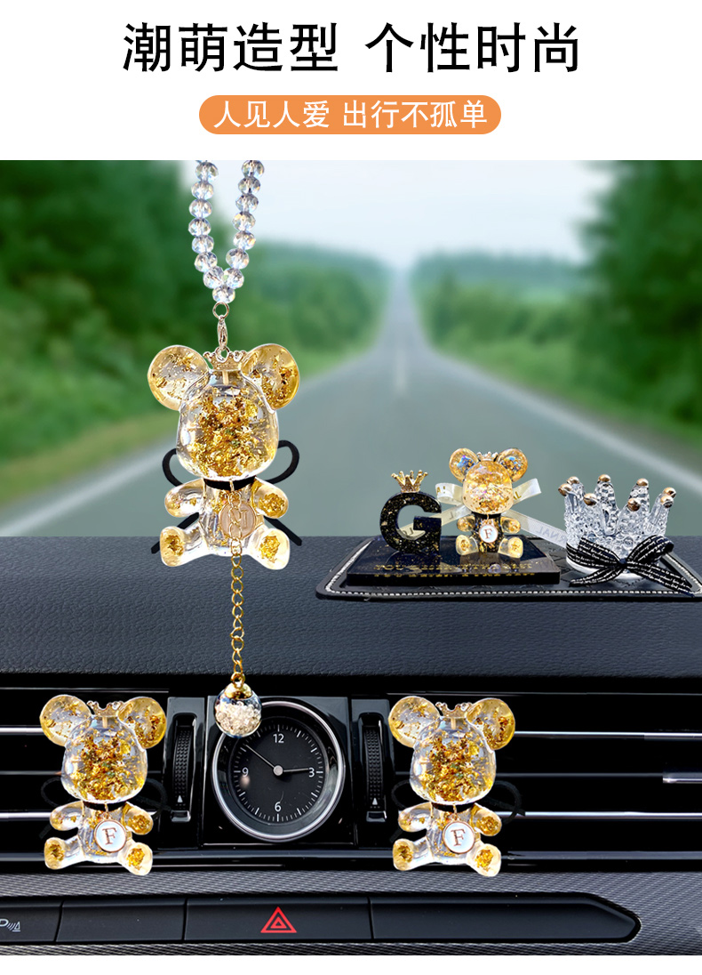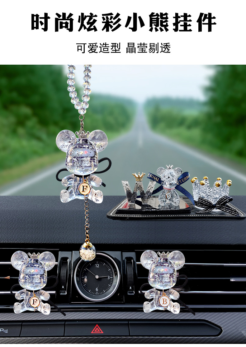 车内饰品摆件汽车香薰小熊网红字母车载风口香水后视镜挂饰女高级