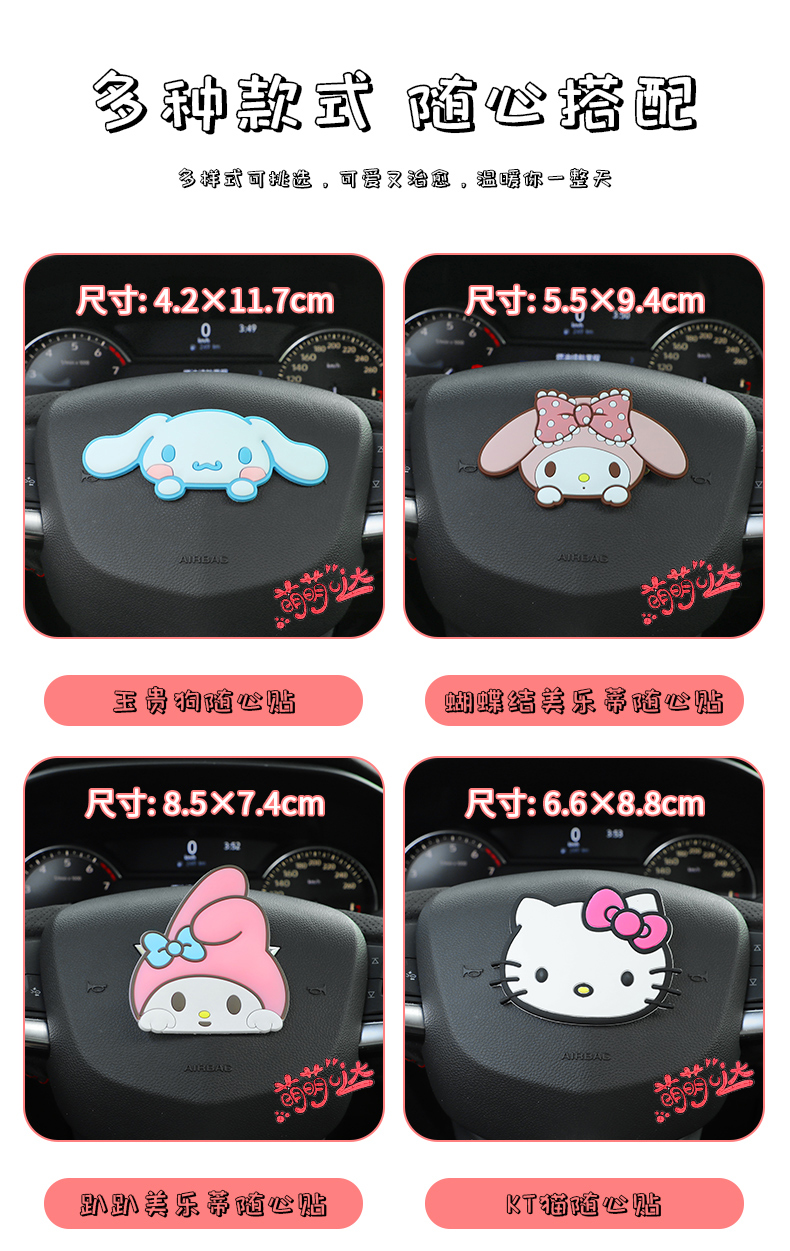 可爱卡通汽车装饰贴后视窗中控台方向盘车标贴片划痕遮挡贴纸女生