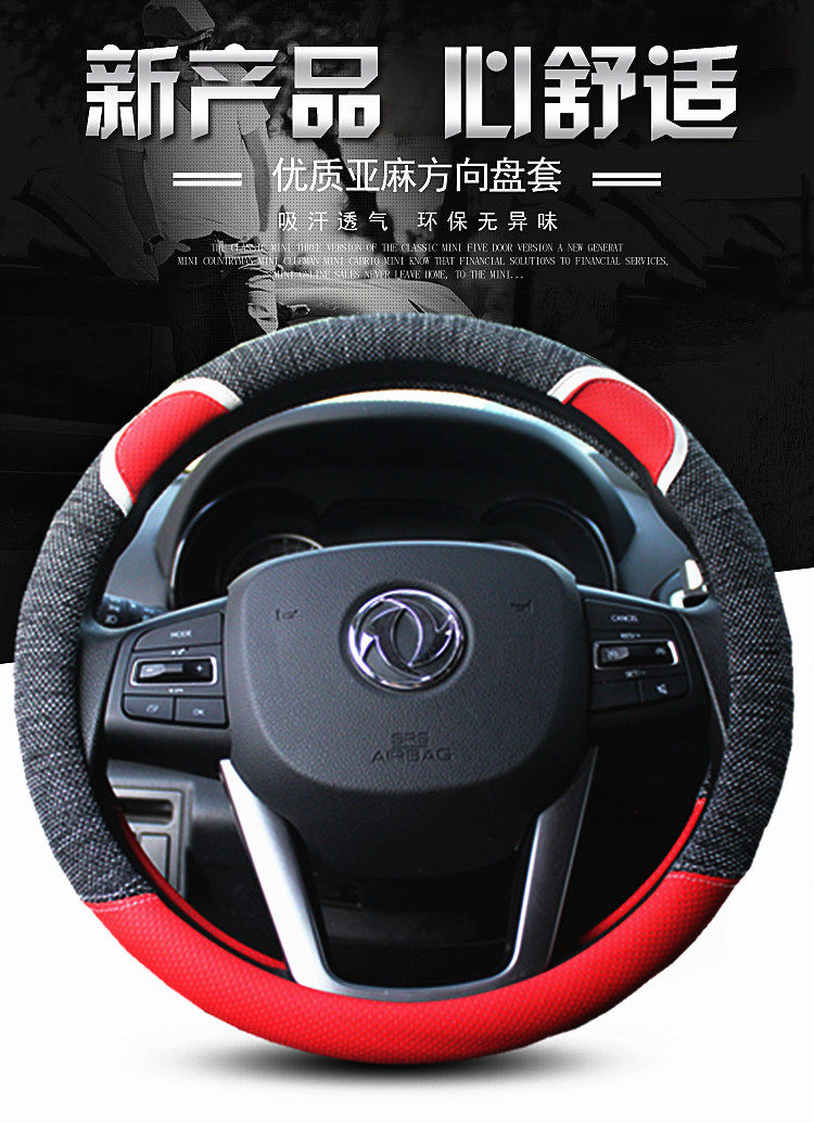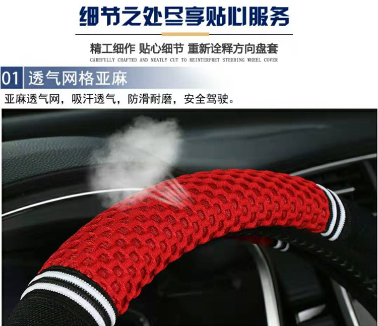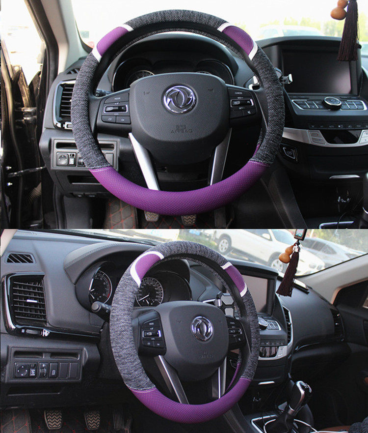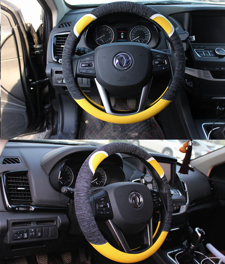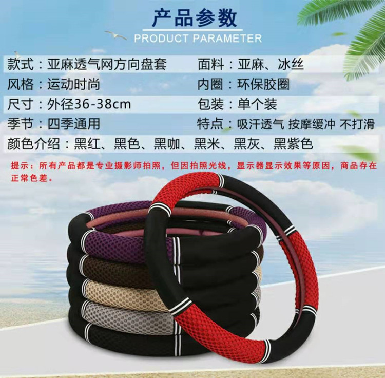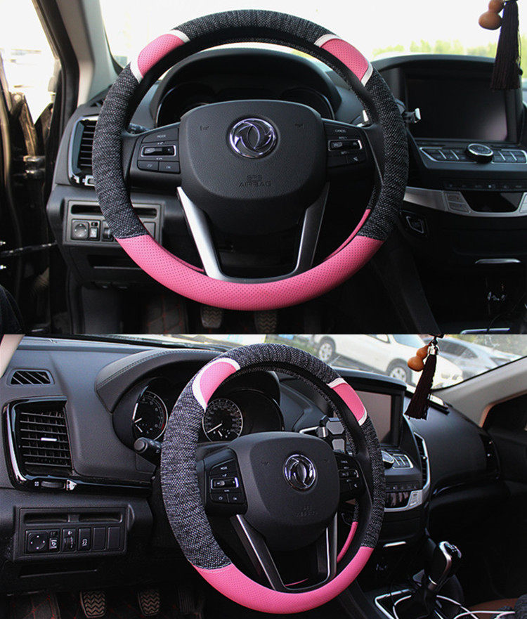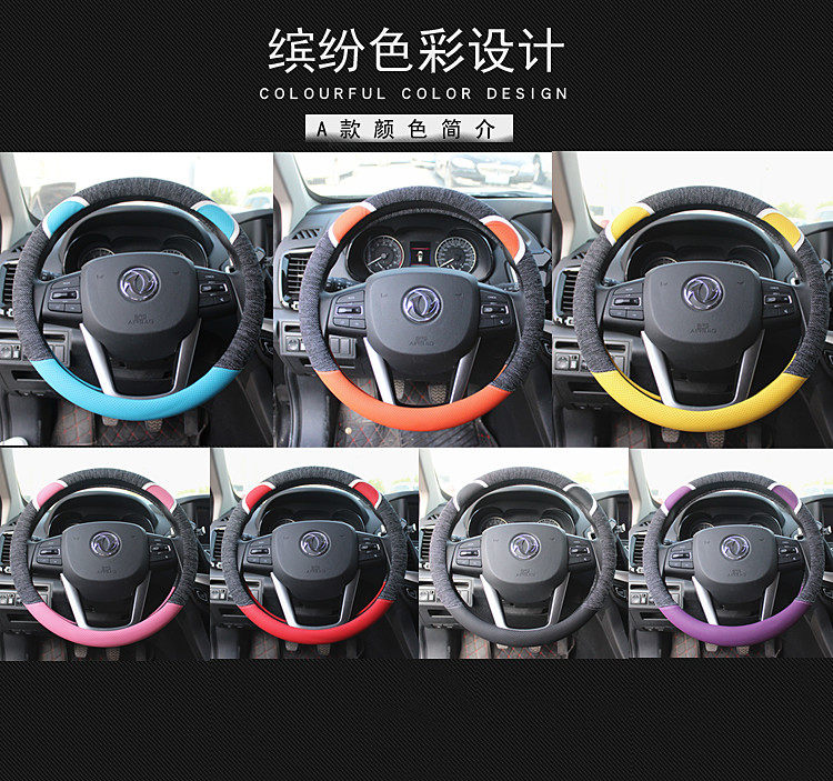 四季通用卡通亚麻方向盘套四轮电动车小号36CM女防滑透气装饰把套