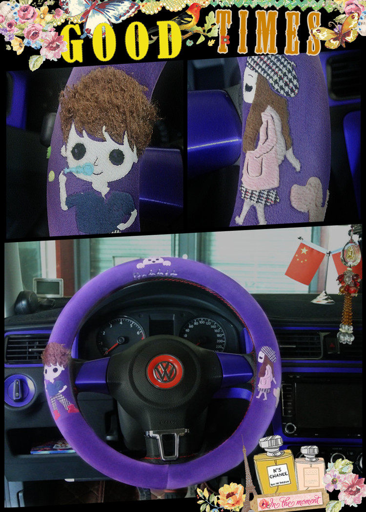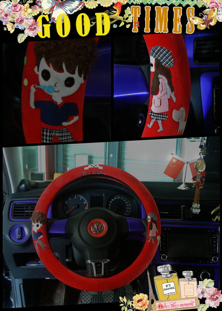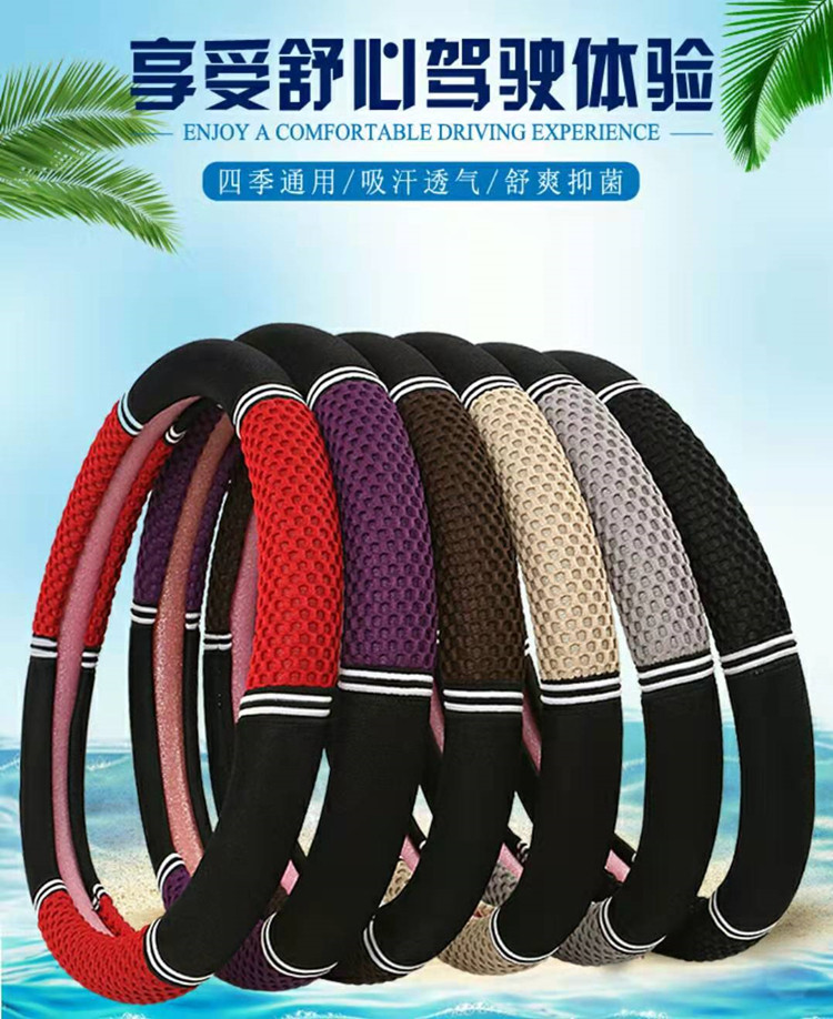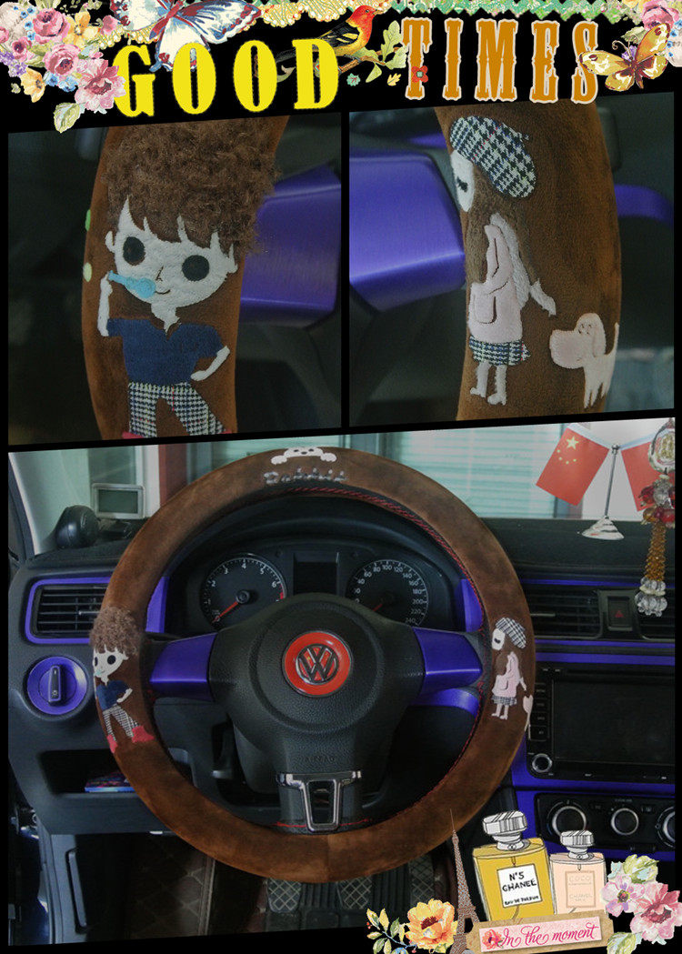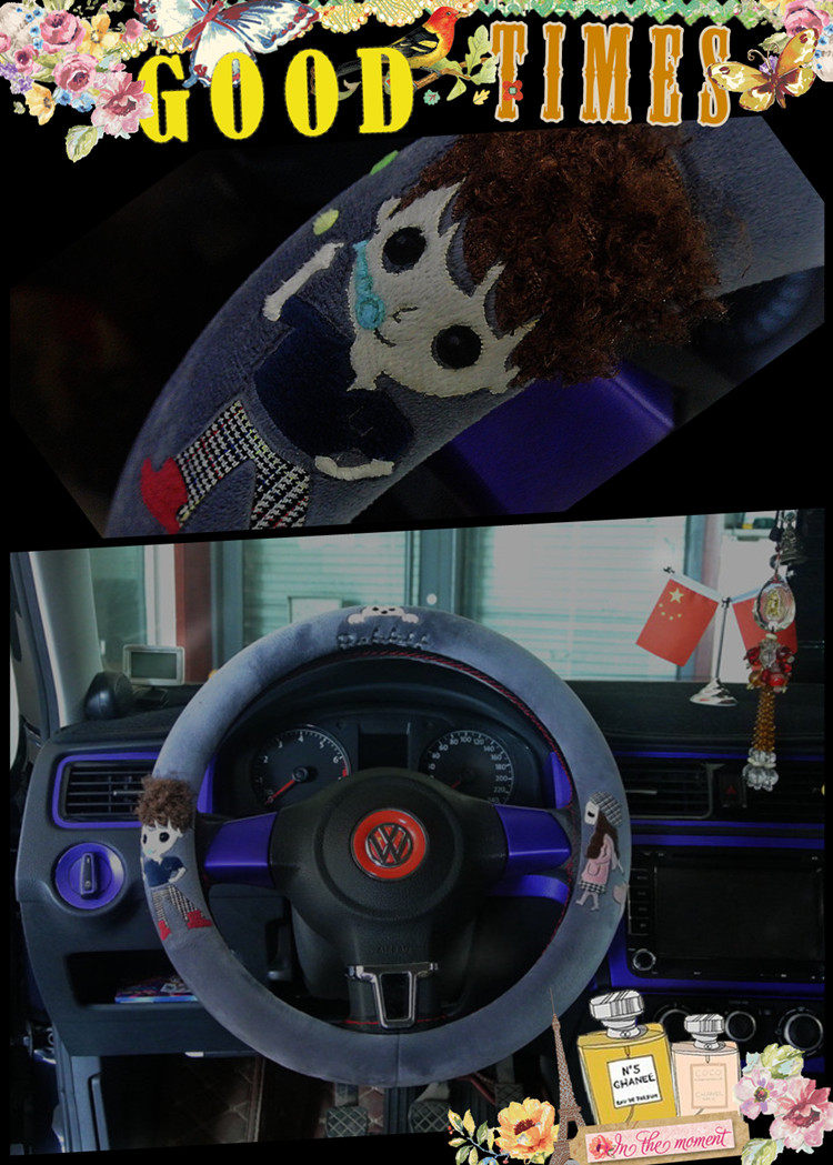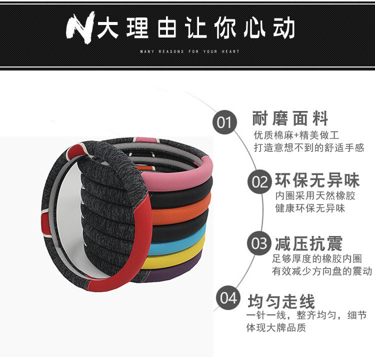 四季通用卡通亚麻方向盘套四轮电动车小号36CM女防滑透气装饰把套