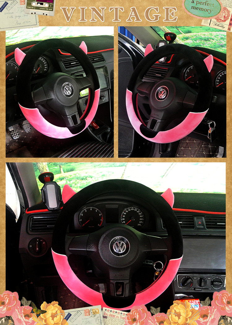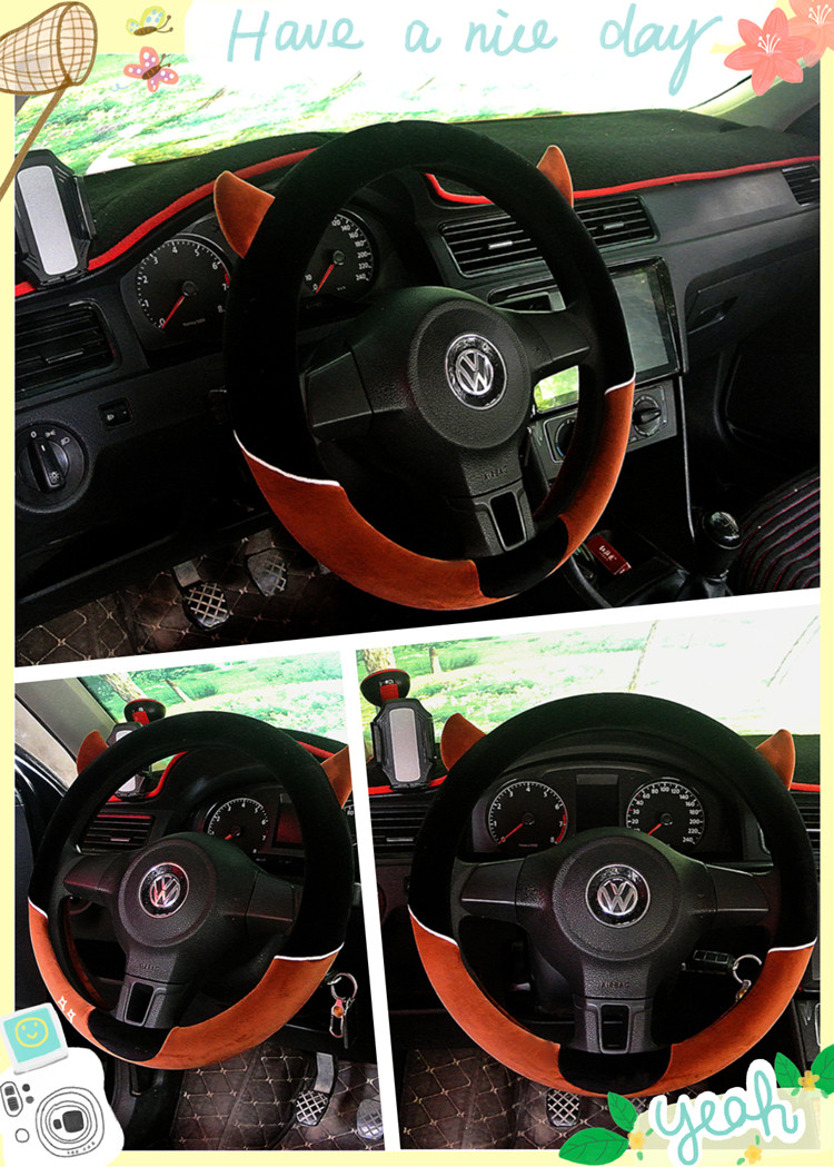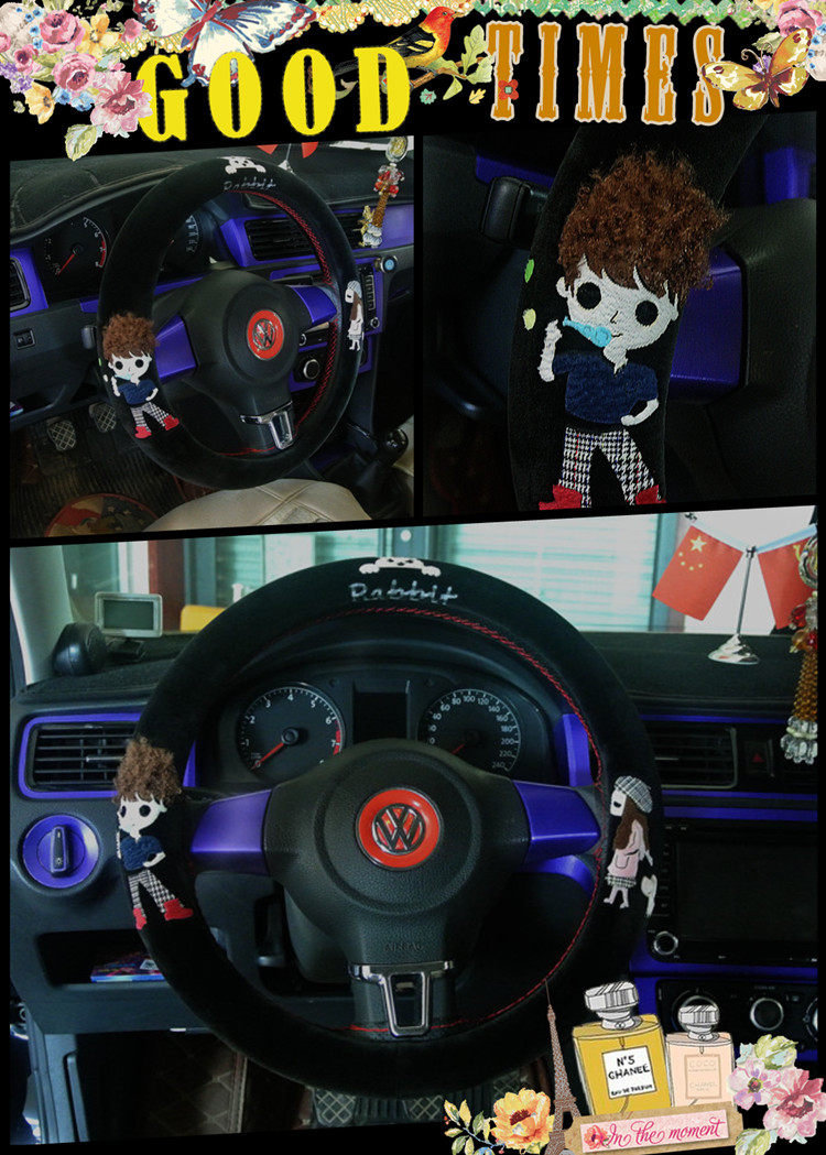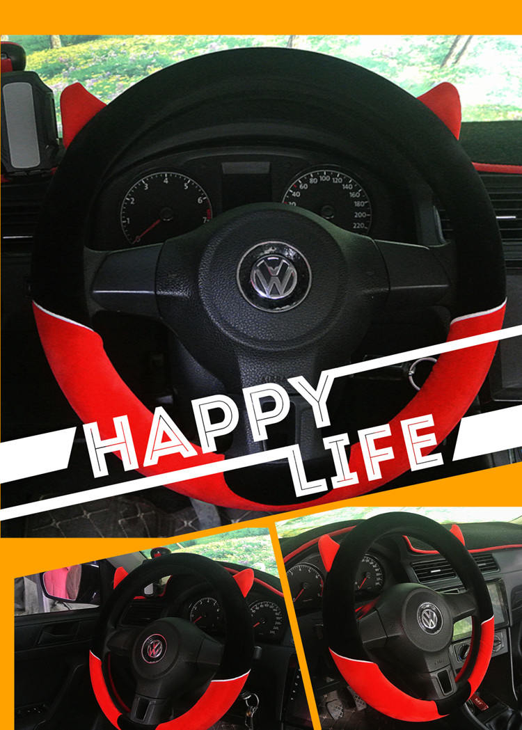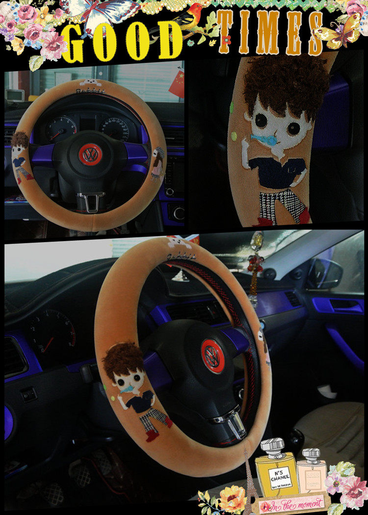 四季通用卡通亚麻方向盘套四轮电动车小号36CM女防滑透气装饰把套